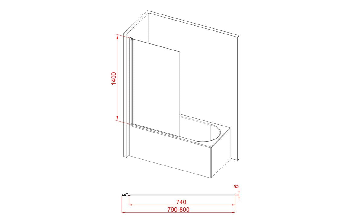 800x1400mm Square Bath Screen 6mm