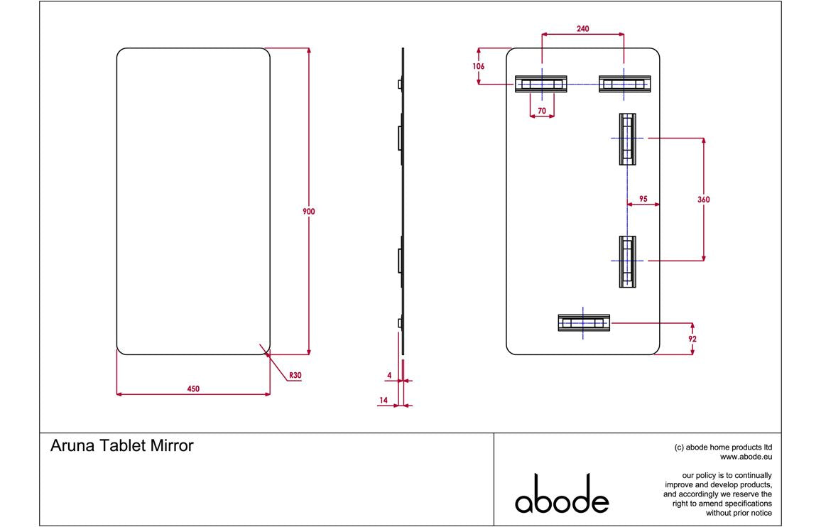 Abode Aruna 450x900mm Frameless Tablet Mirror