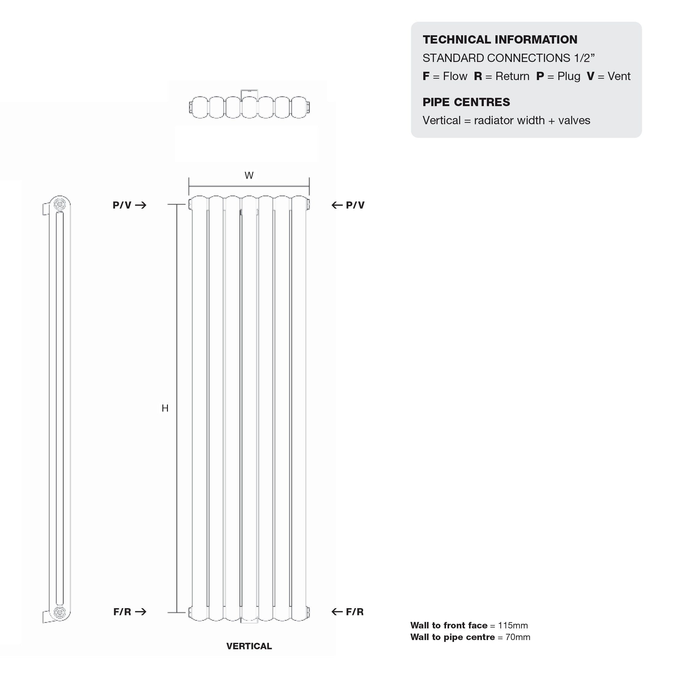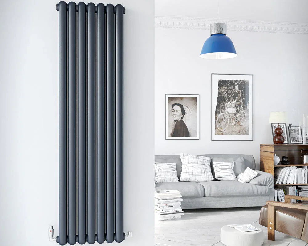 Cassius Vertical Designer Radiator - White & Anthracite - 1800mm x 230mm, 370mm & 510mm