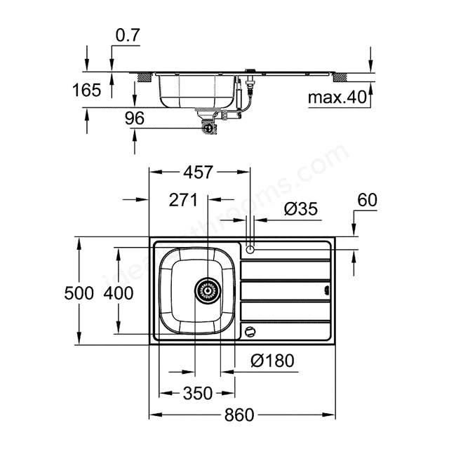 The GROHE Eurosmart kitchen sink and tap bundle offers a fuss-free way to update your sink. It has both a durable sink with useful features and a great kitchen tap, all in one package. The GROHE K200 stainless steel sink has two pre-drilled tap holes, meaning that it is fully reversible. The sink offers plenty of internal space, with a bowl depth of 17cm, meaning even large pans will fit comfortably. The sink comes with some clever features to enhance your experience: for a quieter kitchen, GROHE Whisper insulation on the underside of the sink dampens noise, and the automatic waste fitting with remote control means you can pull the plug without having to put your hand in the dirty water. The sink is made from GROHE StarLight AISI 304 grade stainless steel, with a brushed finish to make the surface less porous and easier to keep clean, meaning it will look good for longer. Installation is swift and fuss-free with the GROHE QuickFix system, and no additional equipment required (classic topmount installation with 7mm profile). To match the sink perfectly, the bundle includes the GROHE Eurosmart single lever mixer tap. Its high spout makes it ideal for large items, while the 140° swivel spout offers maximum flexibility. Inside GROHE Zero uses uses separated inner waterways to make sure your water is 100% lead and nickel-free. The dependable GROHE SilkMove ceramic cartridge and durable StarLight chrome finish mean it will look great and work to perfection for years to come.