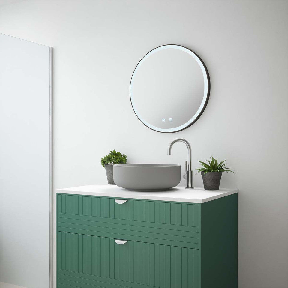 Monaco Tunable LED Mirror 600mm Round - Black Trim with Bluetooth Speaker & Demister