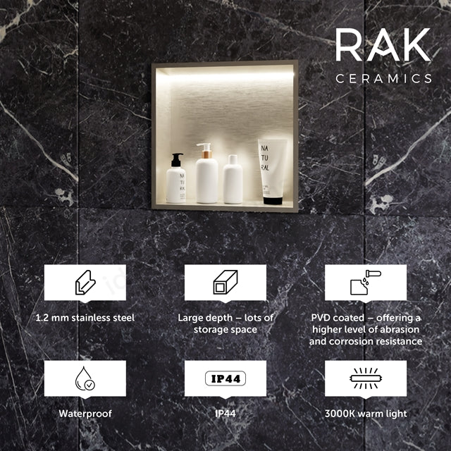 RAK INGOT Recessed Niche with LED 300mm x 300mm