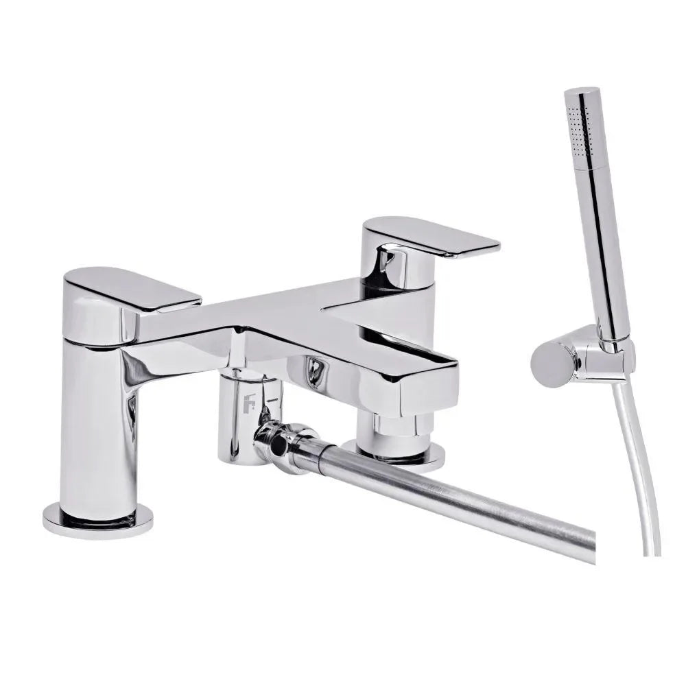Suitable for standard UK bath installations with two-hole deck mounting. Minimum water pressure of 0.2 bar required for optimal performance. Compatible with gravity-fed systems, combination boilers, and mains pressure supplies. Requires connection to handheld shower hose (sold separately). Professional installation recommended to ensure optimal performance.
