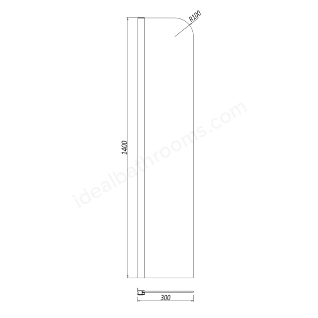 S6 1400mm x 300mm x 6mm Fixed Radius Bath Screen - Chrome