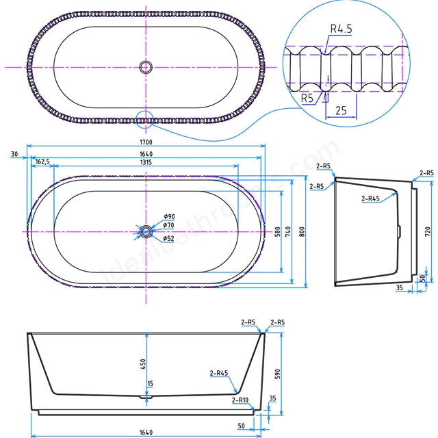 Scudo Labyrinth Fluted Freestanding Bath - White