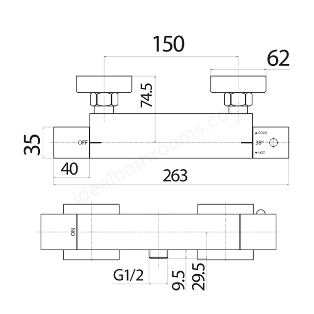 Scudo Lunar Square Exposed Shower Valve - Brass/ Chrome