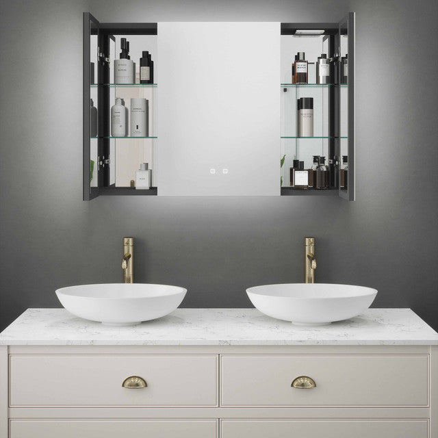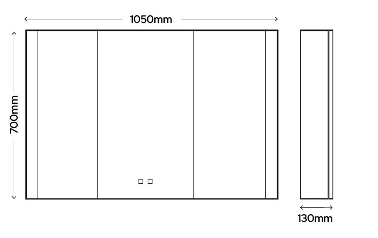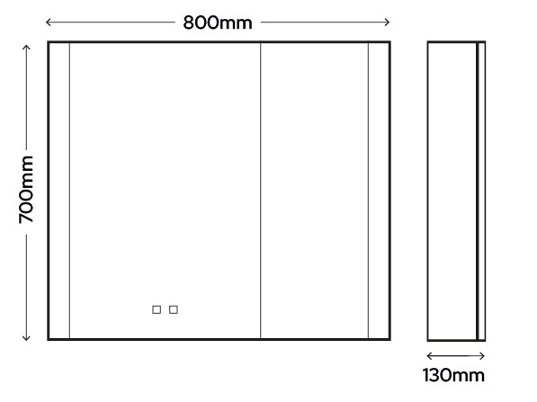 The Single Door (550mm) suits compact bathrooms, en-suites, and cloakrooms. The Double Door (800mm) is ideal for family bathrooms or above a double basin. The Triple Door (1050mm) is designed for larger bathrooms or his-and-hers vanity setups. All three share the same 700mm height, matt black interior, and full feature set.