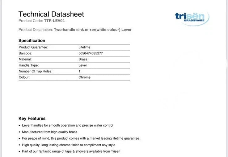 Add a clean, contemporary edge to your kitchen with the Trisen TTR-LEV04 white dual lever sink mixer. Crafted from high-quality... Read more