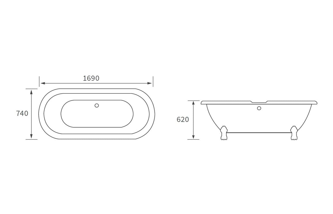 Wembury Freestanding 1690x740x620mm 2TH Bath w/Feet